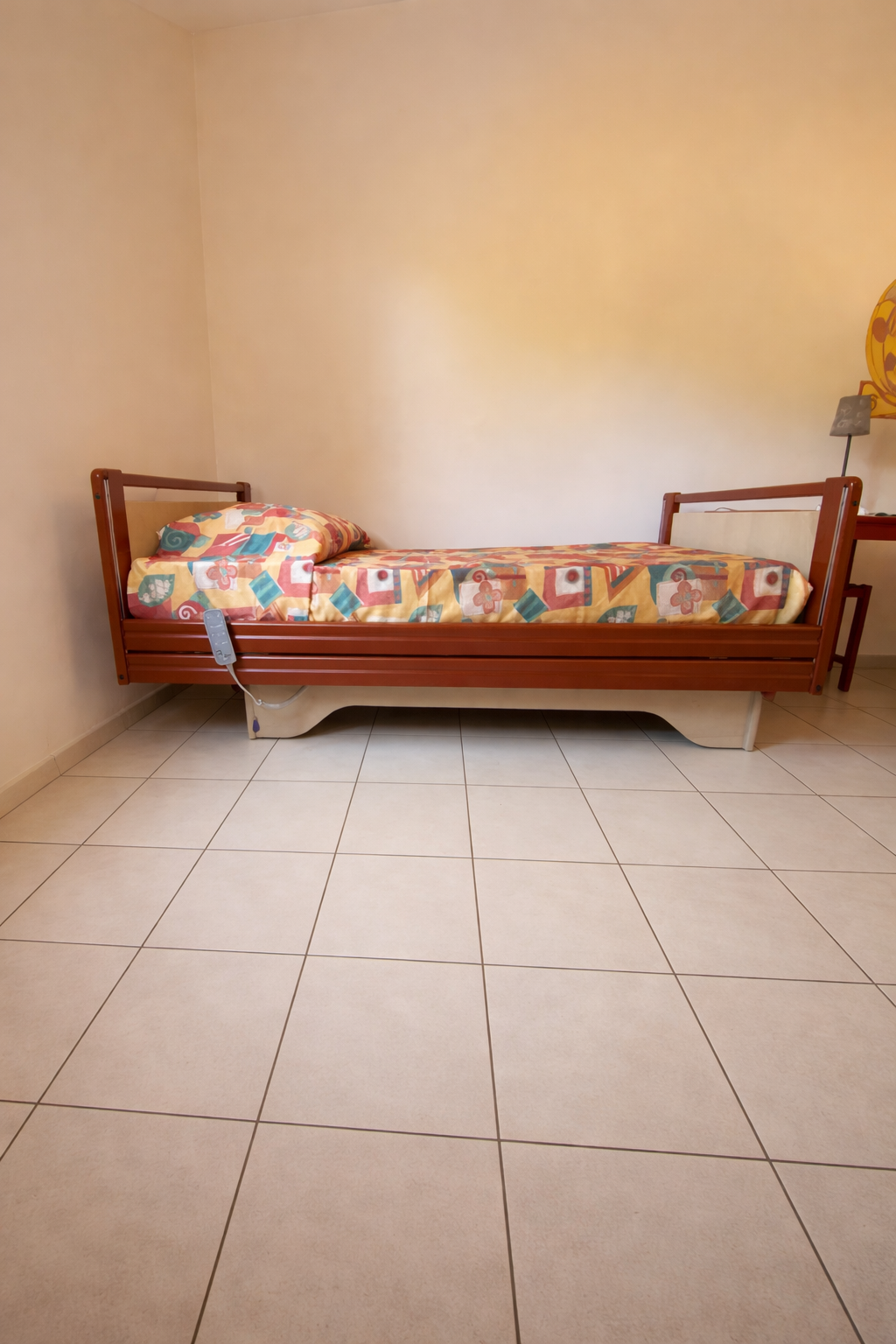 - Les 5 chambres accessibles de la résidence sont équipés d’1 lit médicalisé électrique et d’1 lit avec barrières et potence (se soulève à la tête et au pied manuellement).
